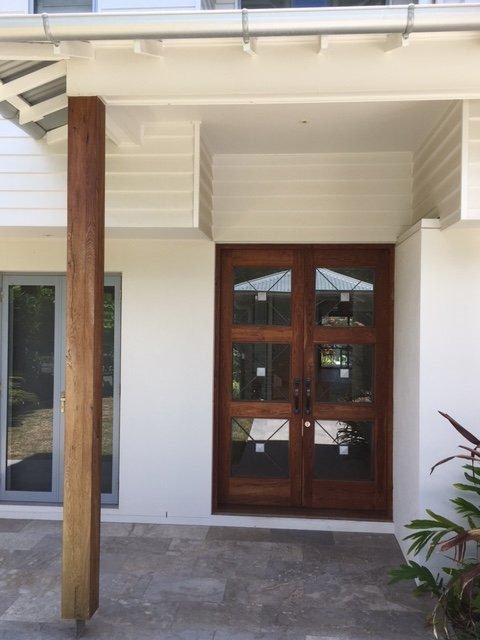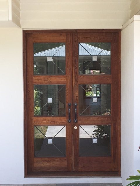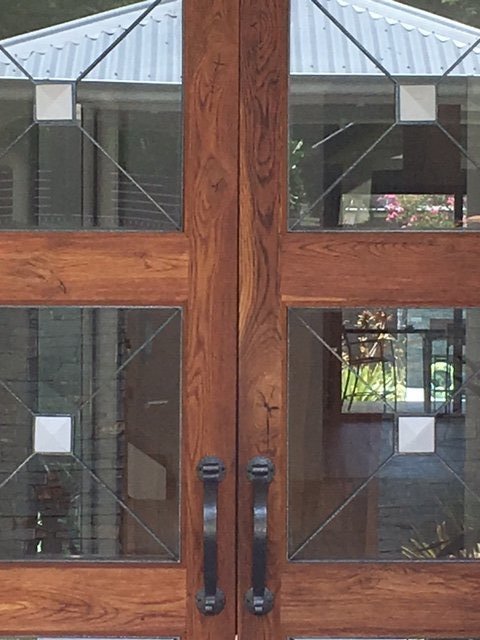 Delivered in 2 stages, firstly the frame, to be set into the house frame, carefully covered until months later. Then, just before the Clients moved in, the builder’s doors were removed, our joiners returned to site, and finished the door set, by simply removing the builder’s doors and replacing and adjusting to perfection, these magnificent doors. The glass is also insulated from the steel grills!