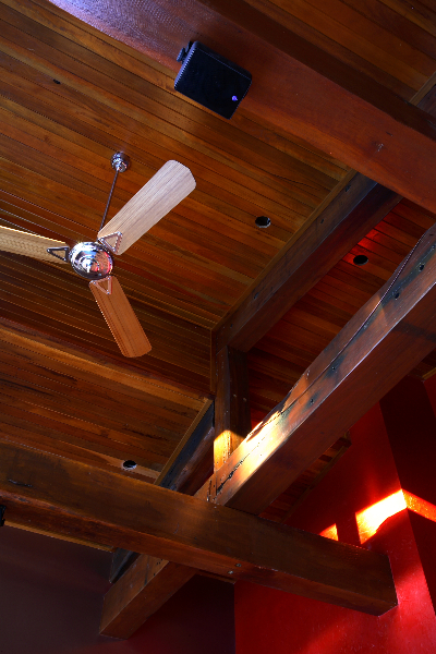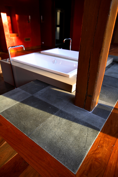 French Oak Australasia supplied, Recycled Ironbark was used for the structural columns, verandas and decking, Spotted Gum was used for the external cladding, Recycled Karri, Jarrah, Ironbark and Spotted Gum was used for the internal flooring, windows, door, bathroom joinery and bench tops and Pine Boards were used for the ceiling lining, and Recycled Oregon was used for the rafter beams. Also used were Reclaimed Honed Bluestone and Cobblestone.