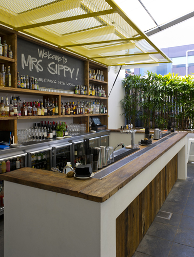 Mrs Sippy Recycled Joinery and FlooringFrench Oak Australasia supplied shelving, cladding and benchtops from Recycled Mountain Ash and Blackbutt and flooring from Recycled German Baltic Pine to the Mrs Sippy Restaurant in Sydney with flooring and joinery.