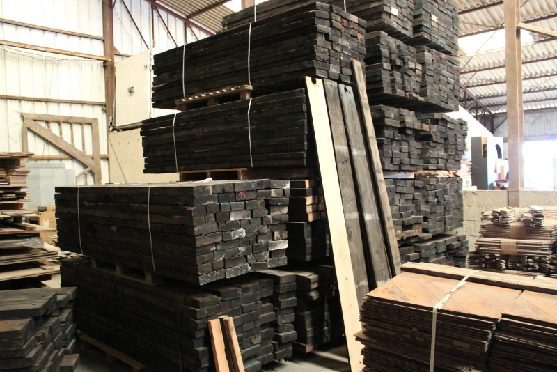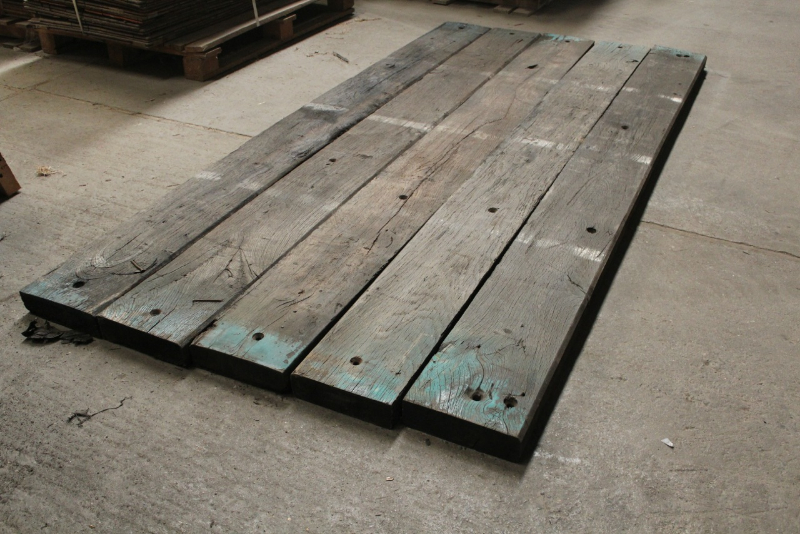 Box car flooring planking, wide boards in old oak, very good rustic aspect. French railway oak typical dimensions.   Can be used for flooring, wall cladding, rough, or brushed (see photos), waxed ….. with stocks varying depending on availability.