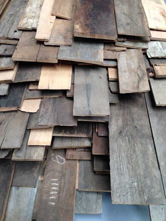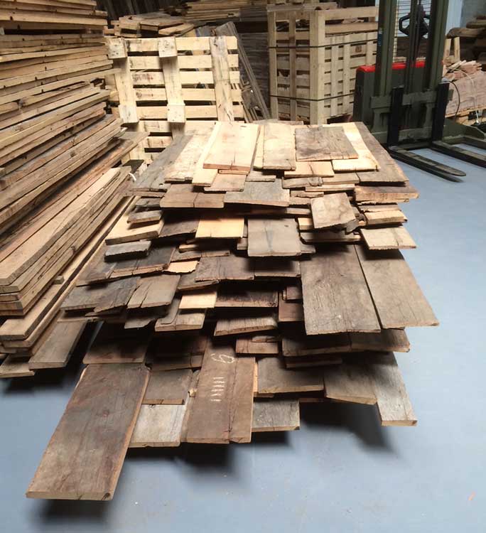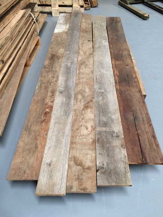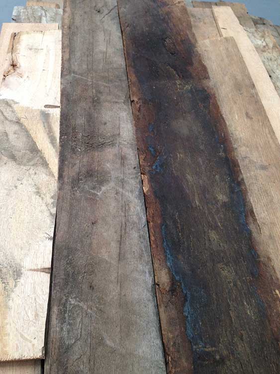All of our Recycled French Oak Cladding is a minimum of 100 years old, sometimes up to 330 years in age, is offered to the market in random width, length and thickness, with a minimum thickness of 10mm for durability, maximum normally 23-25mm.