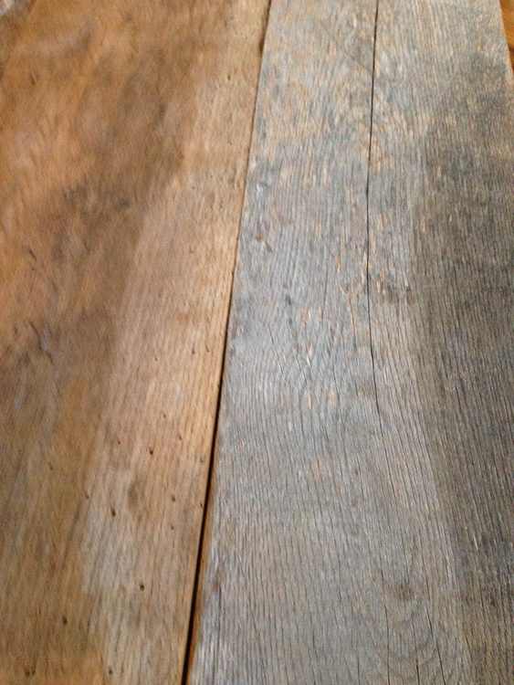 3. The top face of Antique French Oak Flooring, re-milled to create a new face to old floorboards, with the Original Patina preserved and renewed.