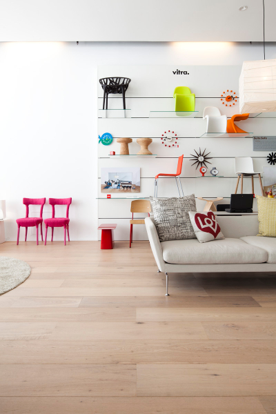 Space Furniture - Classic Ivory - Prefinished New French OakFrench Oak Australasia supplied Space Furniture in Melbourne with Prefinished New French Oak in Classic Ivory. A gorgeous furniture showroom.