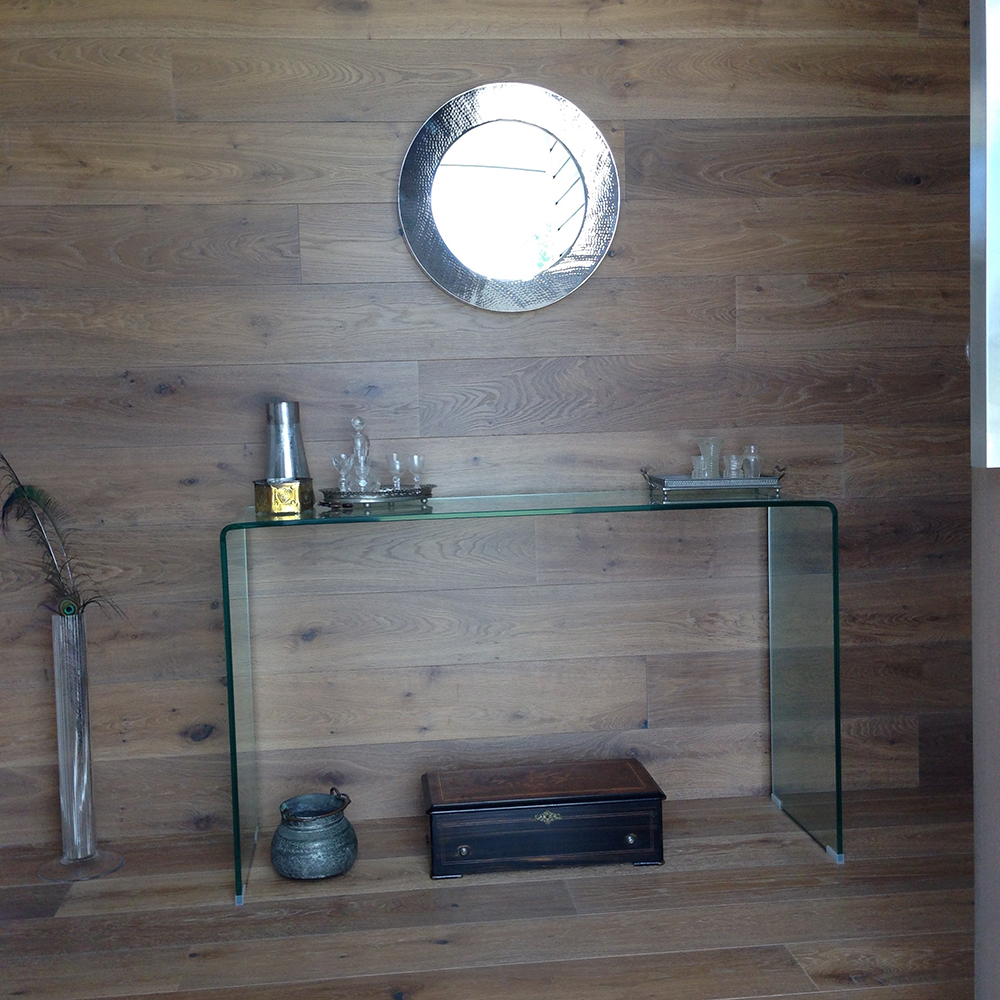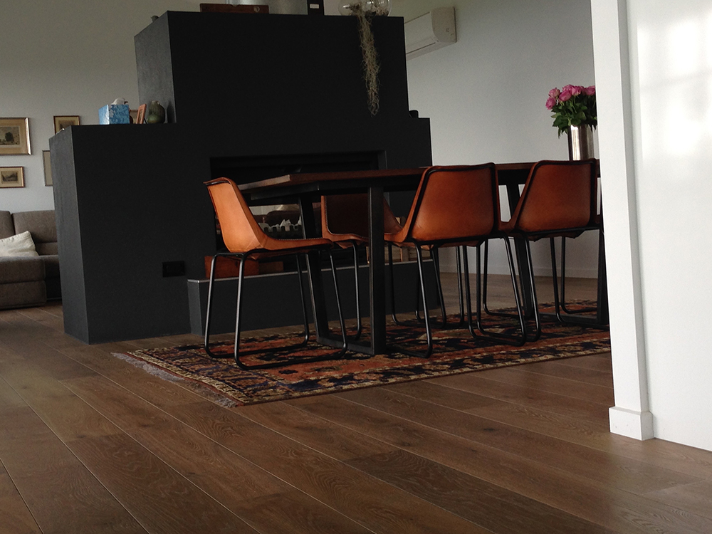 French Oak Australasia supplied to this home residential project with beautiful TRANQUILITY, pre-finished engineered European Oak flooring, in 180mm x 20mm size. TRANQUILITY is double smoked and lime washed, with the grain and the beautiful texture of the Oak coming through in soft contrast to the smoked richness of the wood.